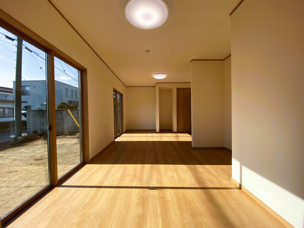 玄関・ホールに面する扉は大きく開ける3枚引き戸に、キッチンにつながる引違い戸はキッチンに自然光が届くよう採光を大きくとれる形状にしました。
