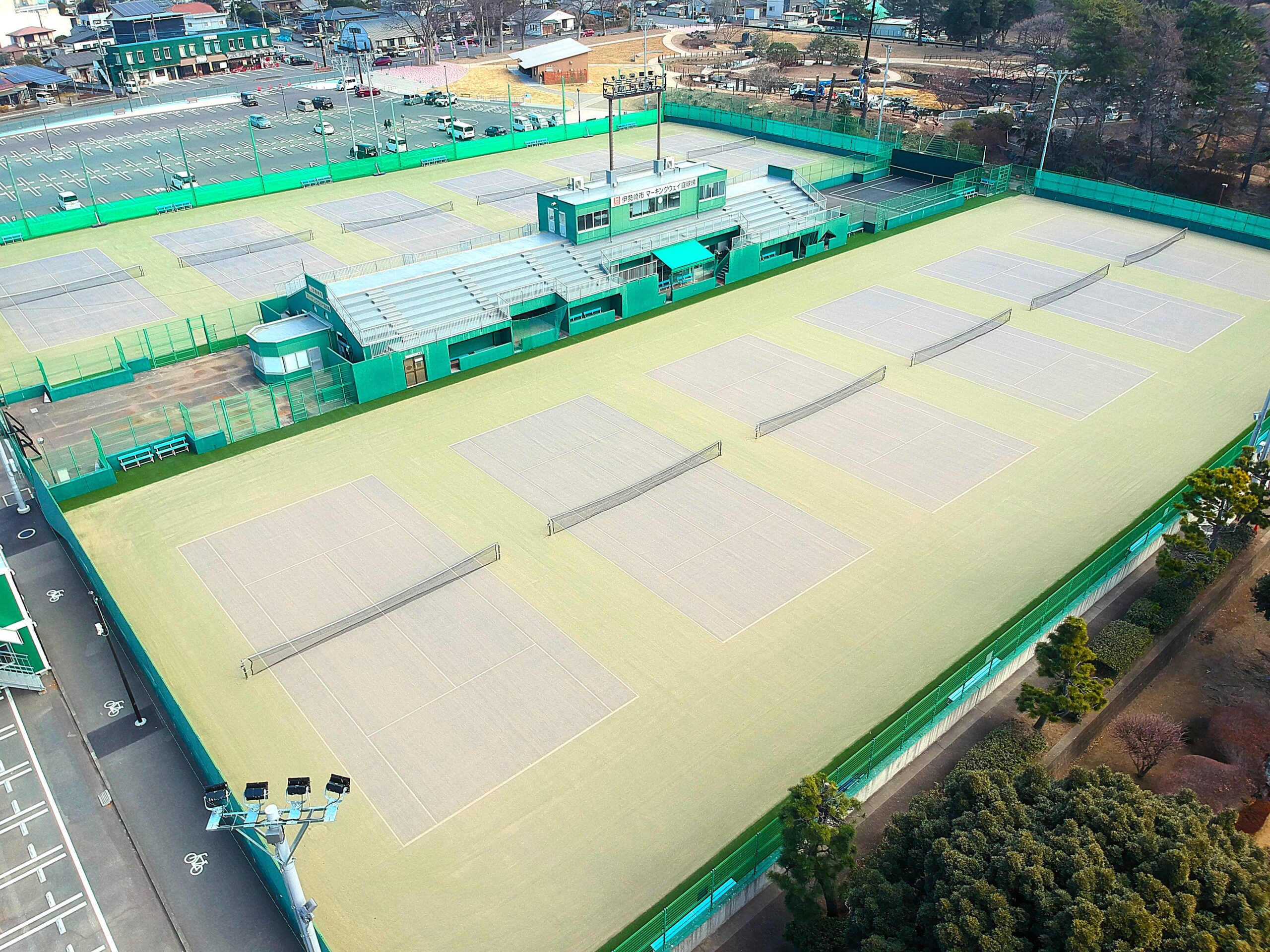 伊勢崎市庭球場は華蔵寺公園にある市営のテニス場で、体育館や陸上競技場、野球場など華蔵寺公園運動施設のひとつです。テニス場の敷地中央には観客席があり、観覧席の南側に6面、北側に6面のテニスコート、南北のテニスコートから利用できるよう敷地の中央、観客席の隣に1面の壁打ちコートがあり、伊勢崎市内外のテニス愛好家の皆様に親しまれています。