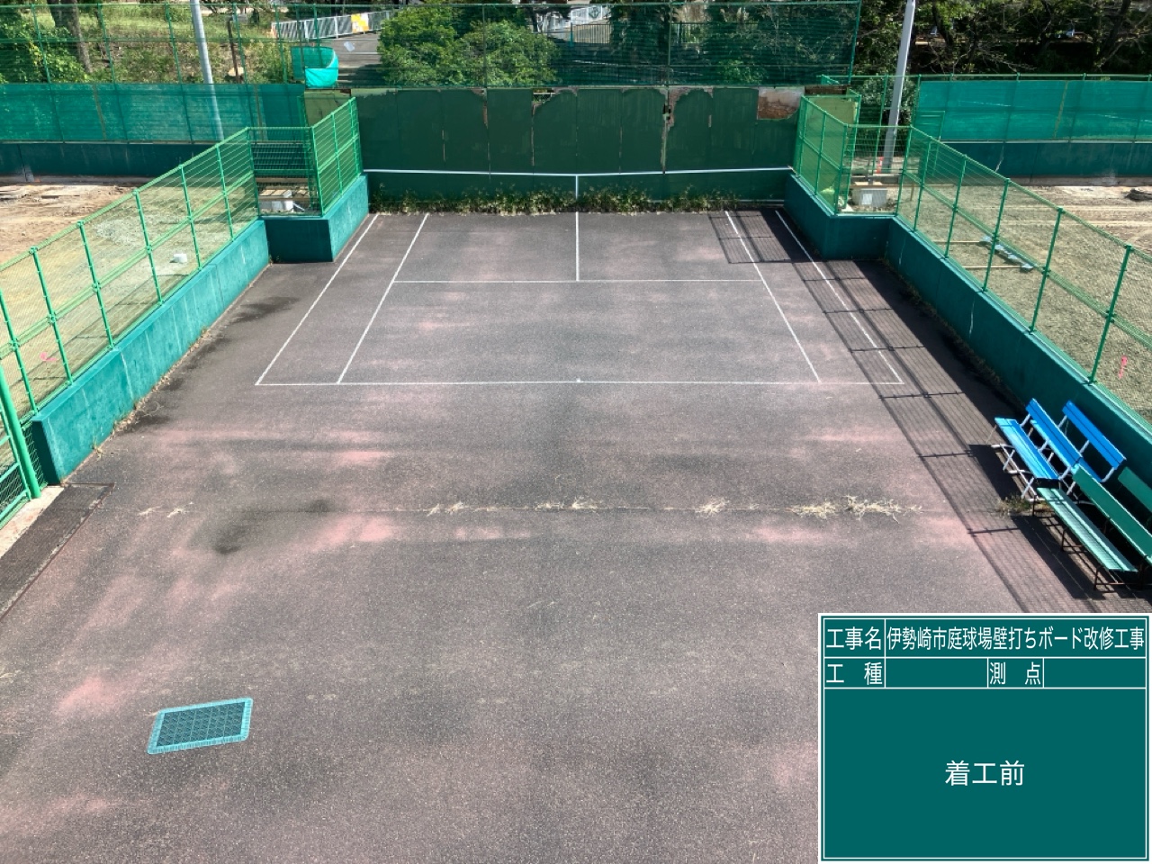 | 主な仕様・施工内容 | クレイコートを撤去、人工芝を舗装:8,238㎡ 壁打ちボードの撤去新設:L12m×H5m 壁打ちボード前面および背面のアスファルト舗装打ち替え:220㎡ |